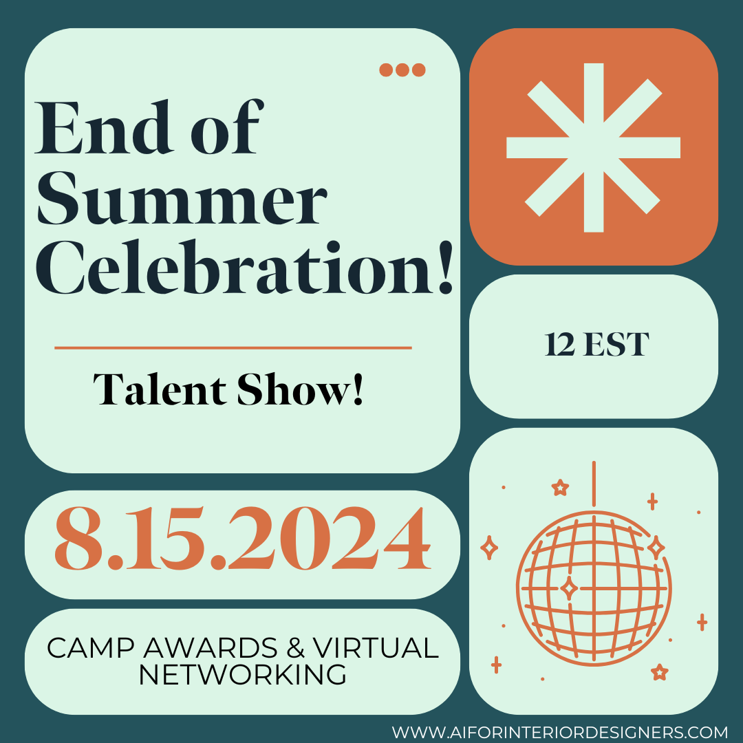 Join us for the End of Summer Celebration, the grand finale of our summer camp! This fun-filled virtual event is the perfect way to wrap up our journey together. We'll showcase everyone’s amazing projects and contest entries, and enjoy some lively virtual networking with the friends we've made along the way.