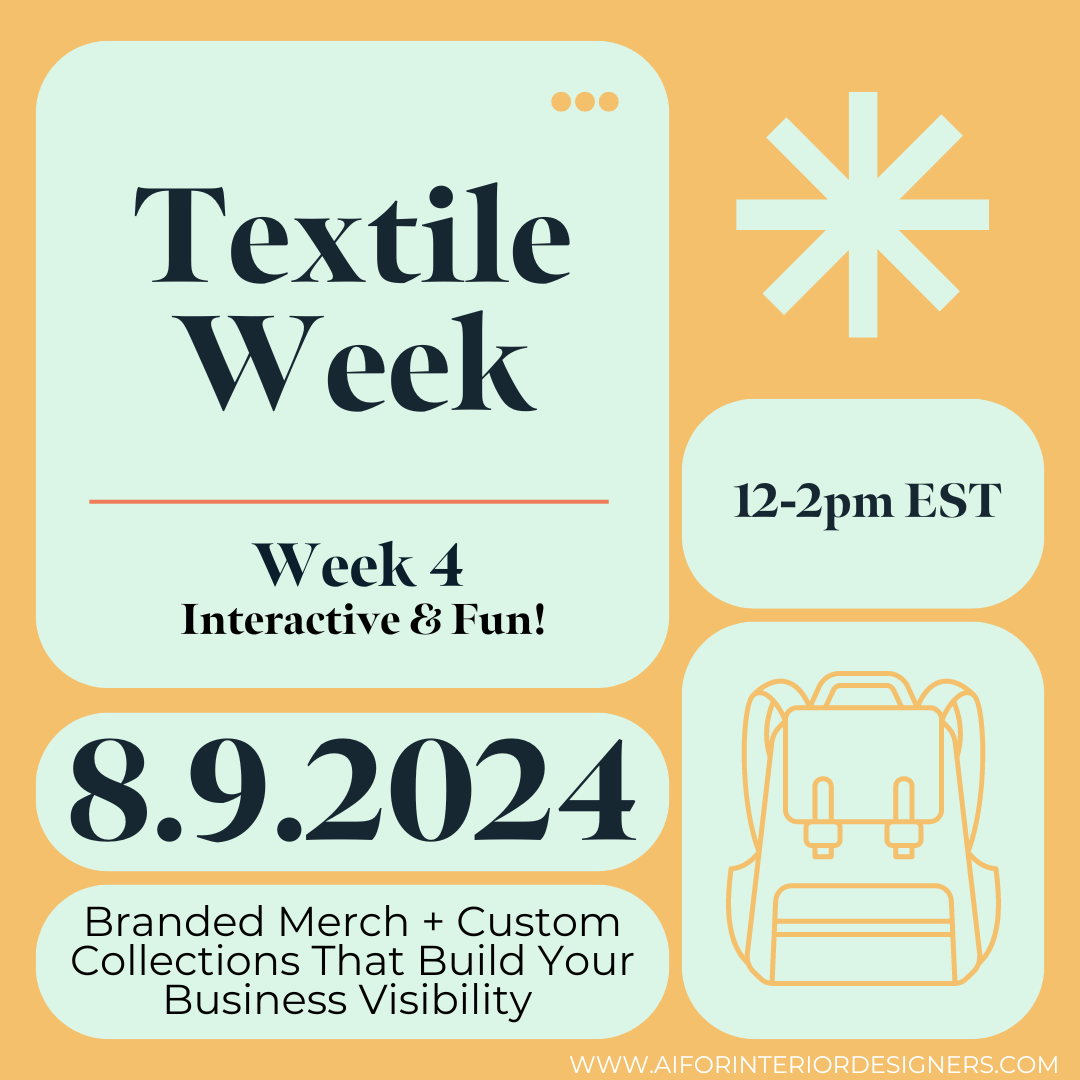 Welcome to Textile Week, where you'll learn how to design your own company swag and/or home decor collection using cutting-edge AI technology and Photoshop and on demand printers.
