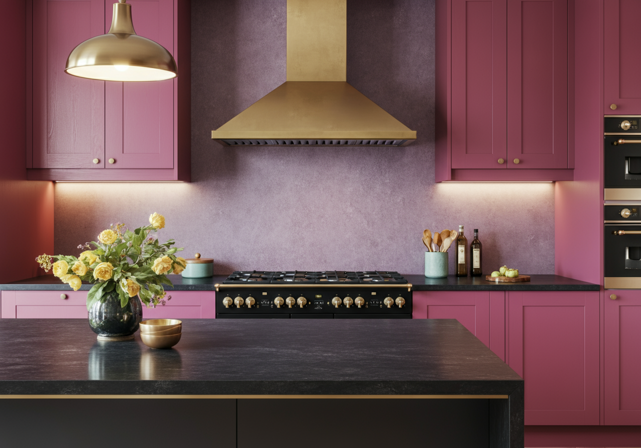 Raspberry & Plum Dual-Tone Kitchen – Realistic